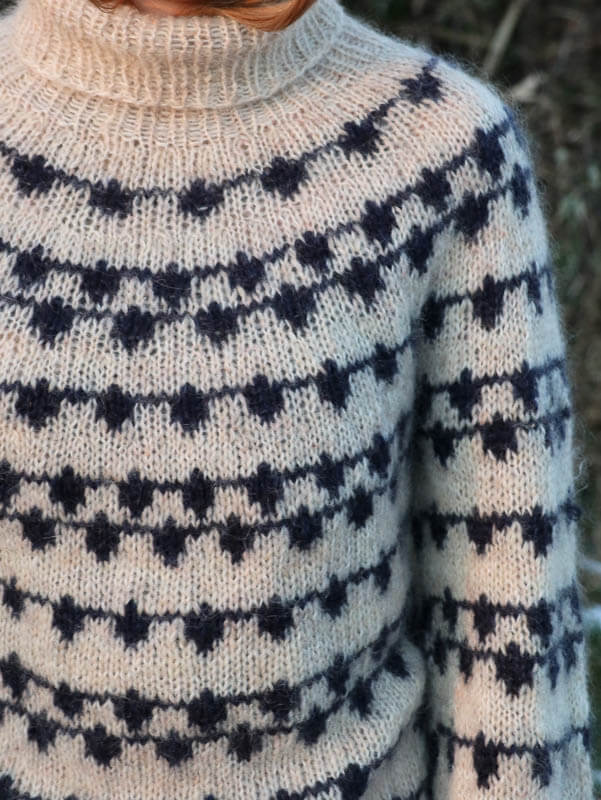 | Struktur og teknik | Fair isle, Glatstrik, Monteringsfri, Oppefra, Rullekrave, Rund hals, Rundt bærestykke |