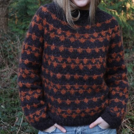 Siw Sweater af Knitamore giver dig rig mulighed for at lege med farverne. Sweateren er lun og blød, og har det fineste mønster. Strik den med eller uden rullekrave i lige de farver du bedst kan lide.