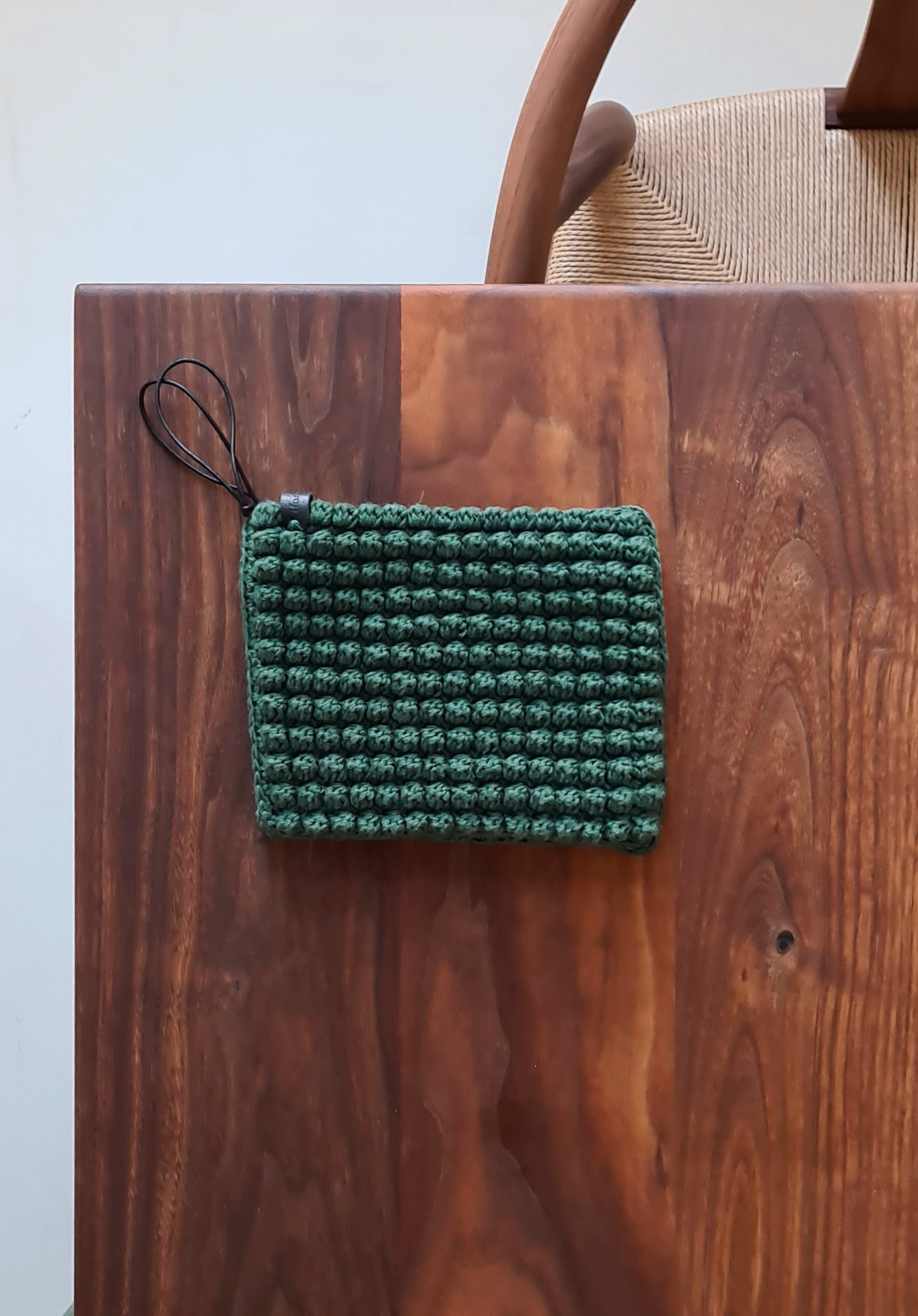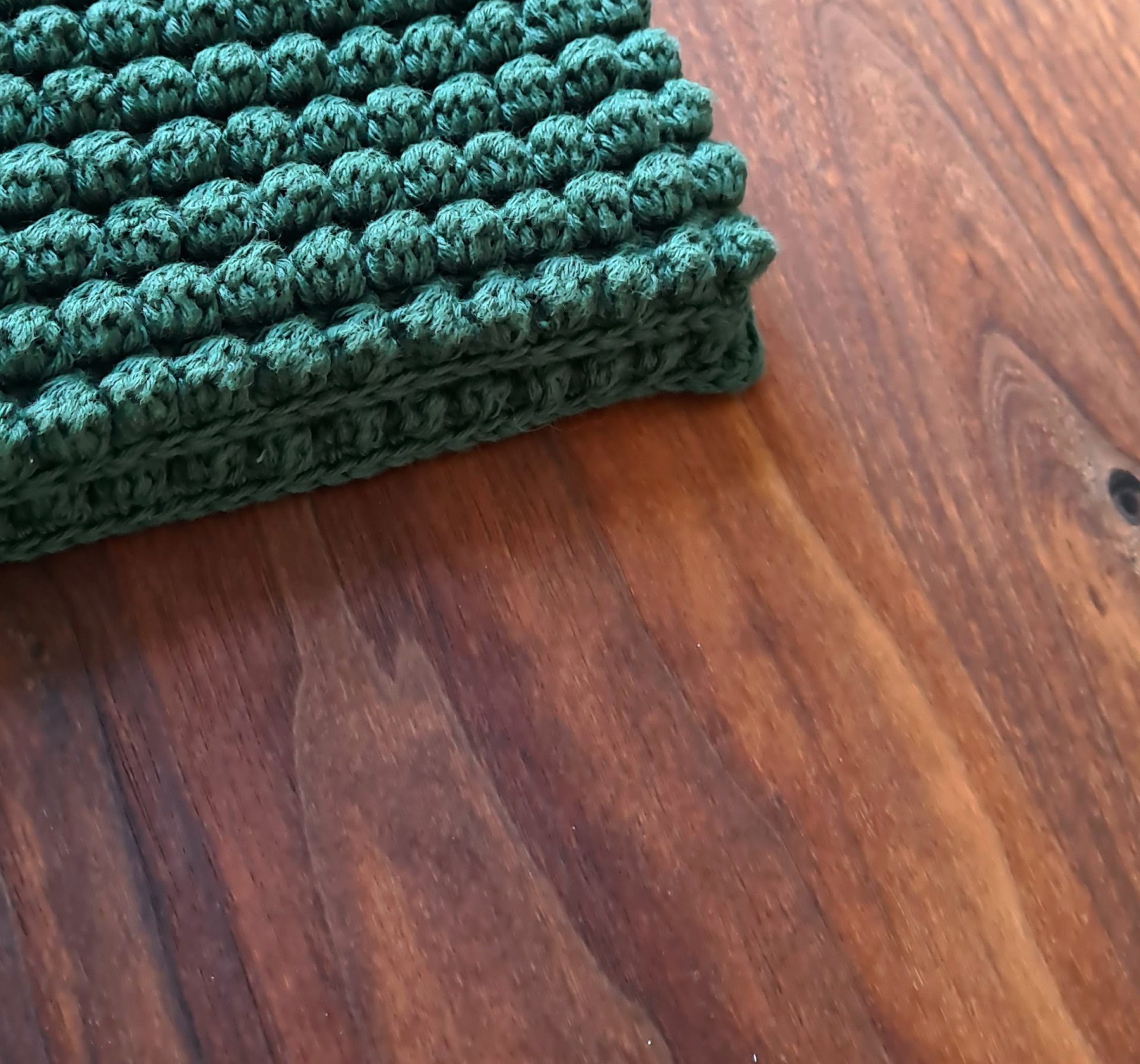 Stines Grydelapper er hæklet med boblemasker hvilket giver den et fint udtryk og mønstret overflade.