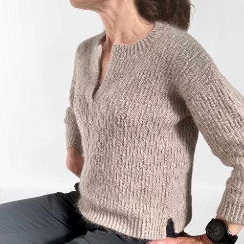 Den lette og luftige følelse kombineret med strukturen i maskebilledet gør denne sweater både behagelig og stilfuld – et perfekt projekt for den rutinerede strikker, der ønsker et lækkert hverdagsdesign med finesse.