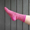 Sukkertøyssokker fra Strikkezilla er et sjovt og farverigt par strømper, inspireret af et legende sukkertøjsmønster. Det unikke design giver strømperne et karakteristisk og livligt udseende, som skiller sig ud fra mere traditionelle strikkede sokker, samtidig med at de bevarer et tidløst og moderne udtryk. Sukkertøjsmønstret tilføjer en ekstra dimension til strikken og gør dem ideelle til både hverdagsbrug og festlige lejligheder.