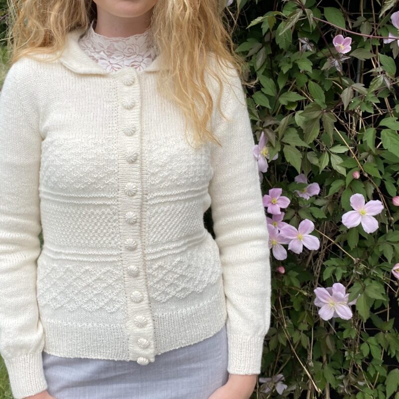 Sød og enkel sommerlet cardigan, der er enkel at strikke. Kraven er strikket dobbelt og over brystet er der et enkelt og nemt struktur mønster.
