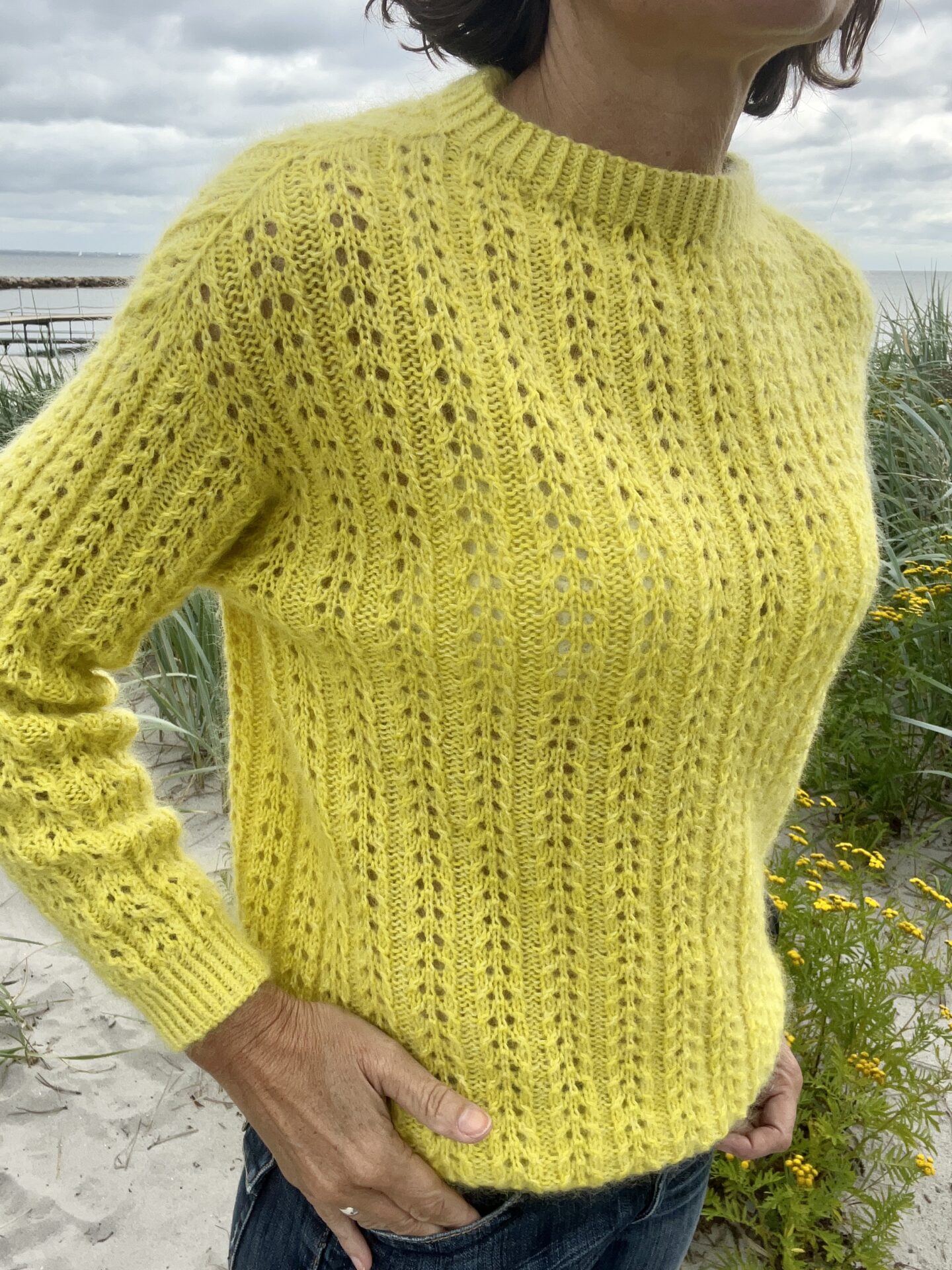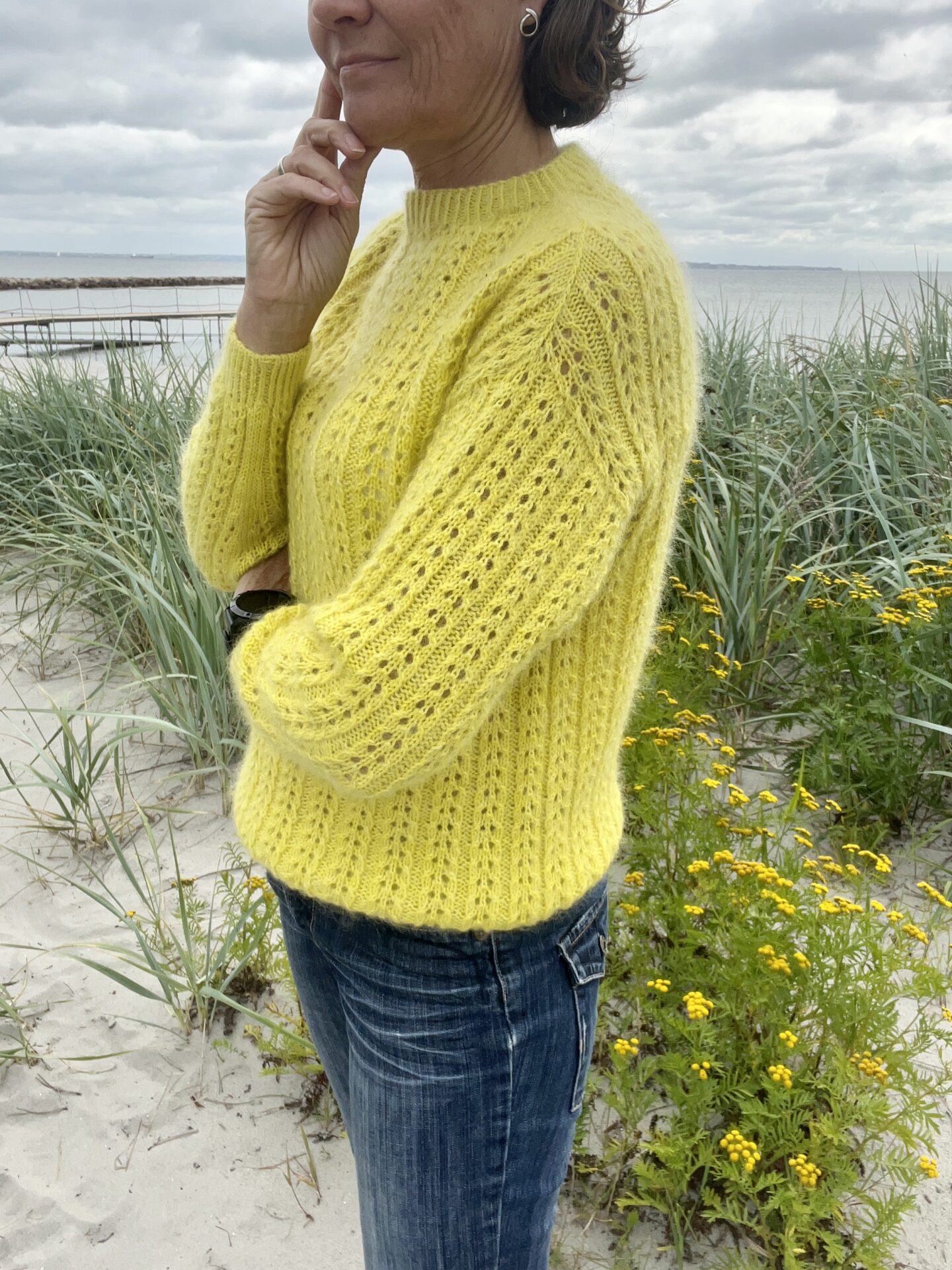 Forkæl dig selv med en smuk strikket sweater fra dygtige Knit And Relax. Sunny Delight sweater er en super smuk strikket sweater, med det fineste hulmønster.