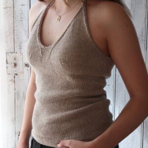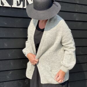 Garnet, der anvendes, er Ombelle fra Fonty, bestående af 75 % mohair, 20 % uld og 5 % polyamid. Garnet har en løbelængde på 145 meter pr. 50 g og strikkes på pinde 4,5 mm for kroppen og 3,5 mm til ribkanter. Strikkefastheden er 20 masker x 22 rækker på 10 x 10 cm i glatstrik.