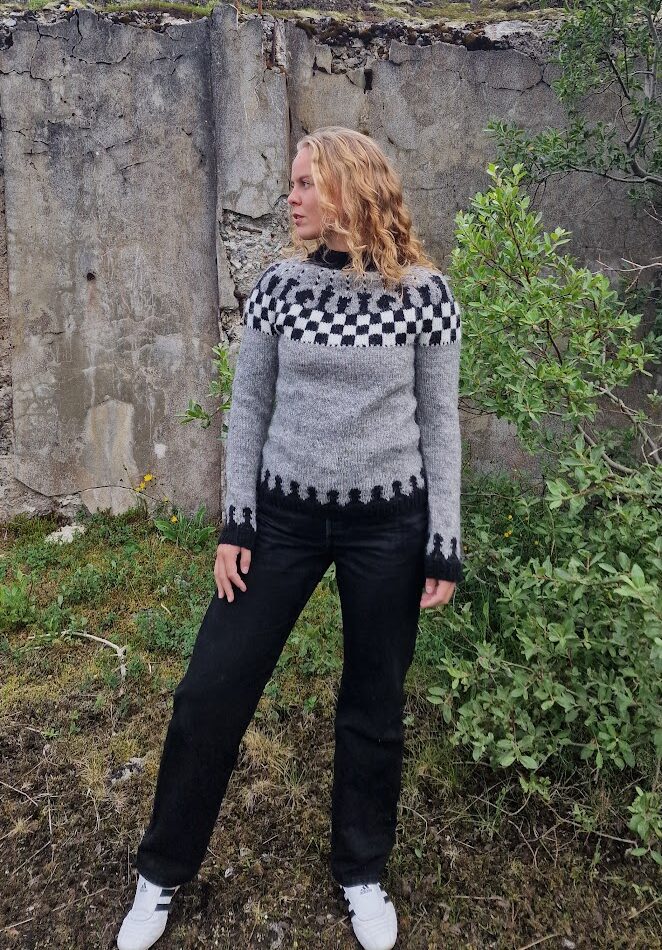 The Tafl sweater, designed by Knitter from Iceland/Lopamunstur, is a beautiful Icelandic lopapeysa with a timeless geometric yoke pattern. The design is knitted bottom-up in the round and features a slim fit and slightly shorter body length, making it both modern and traditional at the same time. If you prefer a looser fit, it is recommended to choose a larger size.