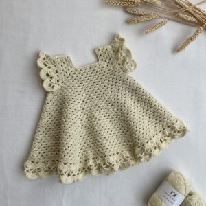 Strikket i Regina fra Lang Yarns får kjolen en fantastisk kvalitet, der både føles blød og let mod huden. Regina er et alsidigt og åndbart garn, der består af ren økologisk bomuld, som gør kjolen behagelig og perfekt til sommerens varme temperaturer. Garnets struktur fremhæver mønsteret smukt og gør kjolen holdbar til leg og bevægelse. Regina-garnet tilfører kjolen en tidløs elegance, der gør den til en oplagt mulighed som brudepigekjole eller til særlige lejligheder.
