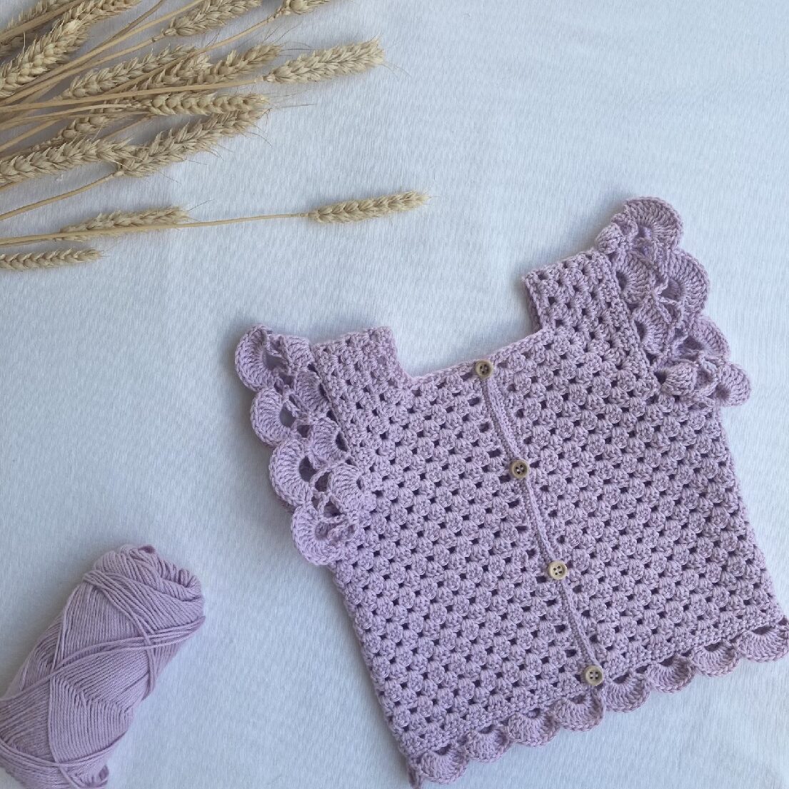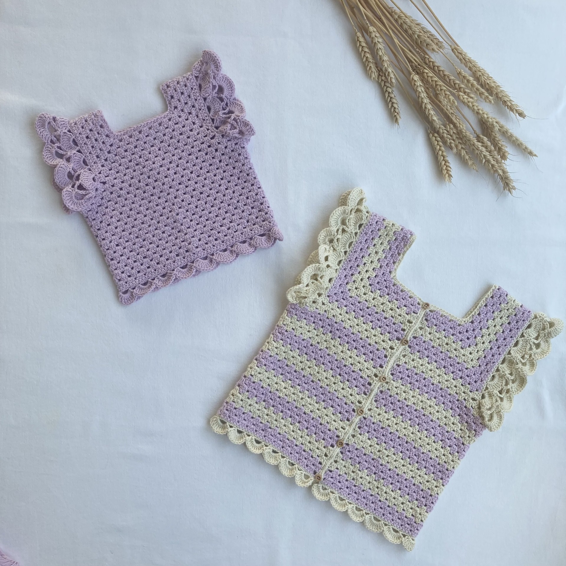 The Frill Top no 1 designed by Violi is the sweetest crocheted children’s top with ruffles for sleeves.