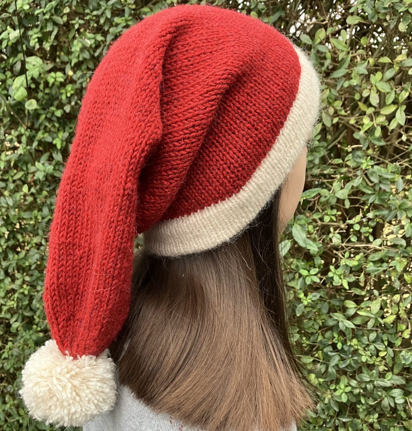 The Nissehue is On er en klassisk og stemningsfuld nissehue, som oser af julehygge og varme. Denne håndstrikkede hue er designet til større børn og er perfekt til både udendørs leg i sneen, julebilleder, eller bare som et sødt og praktisk tilbehør i hele december måned. Med en omkreds på ca. 46 cm (men med god elasticitet) og en længde på ca. 42 cm eksklusiv kvast, passer huen de fleste børn og kan også sagtens bruges af unge teenagere.