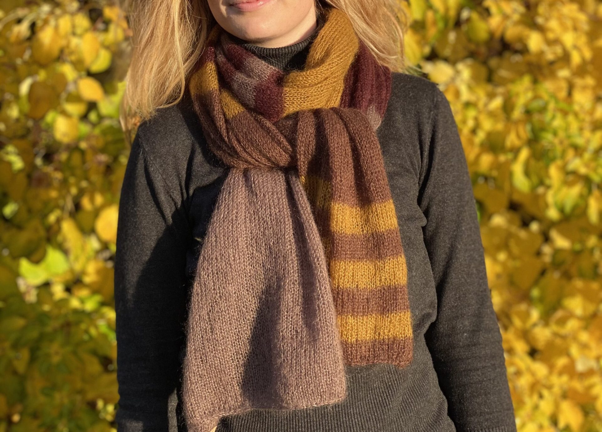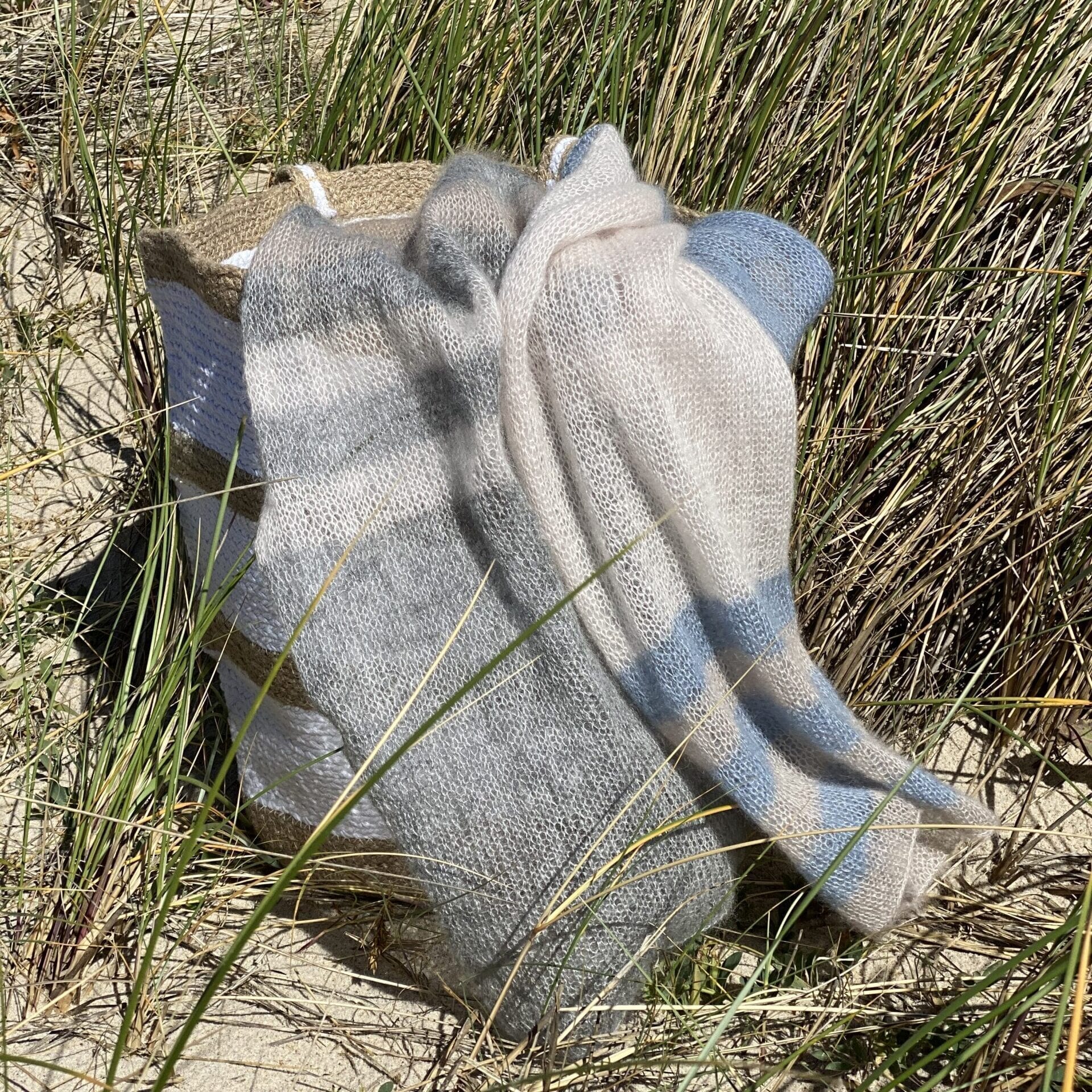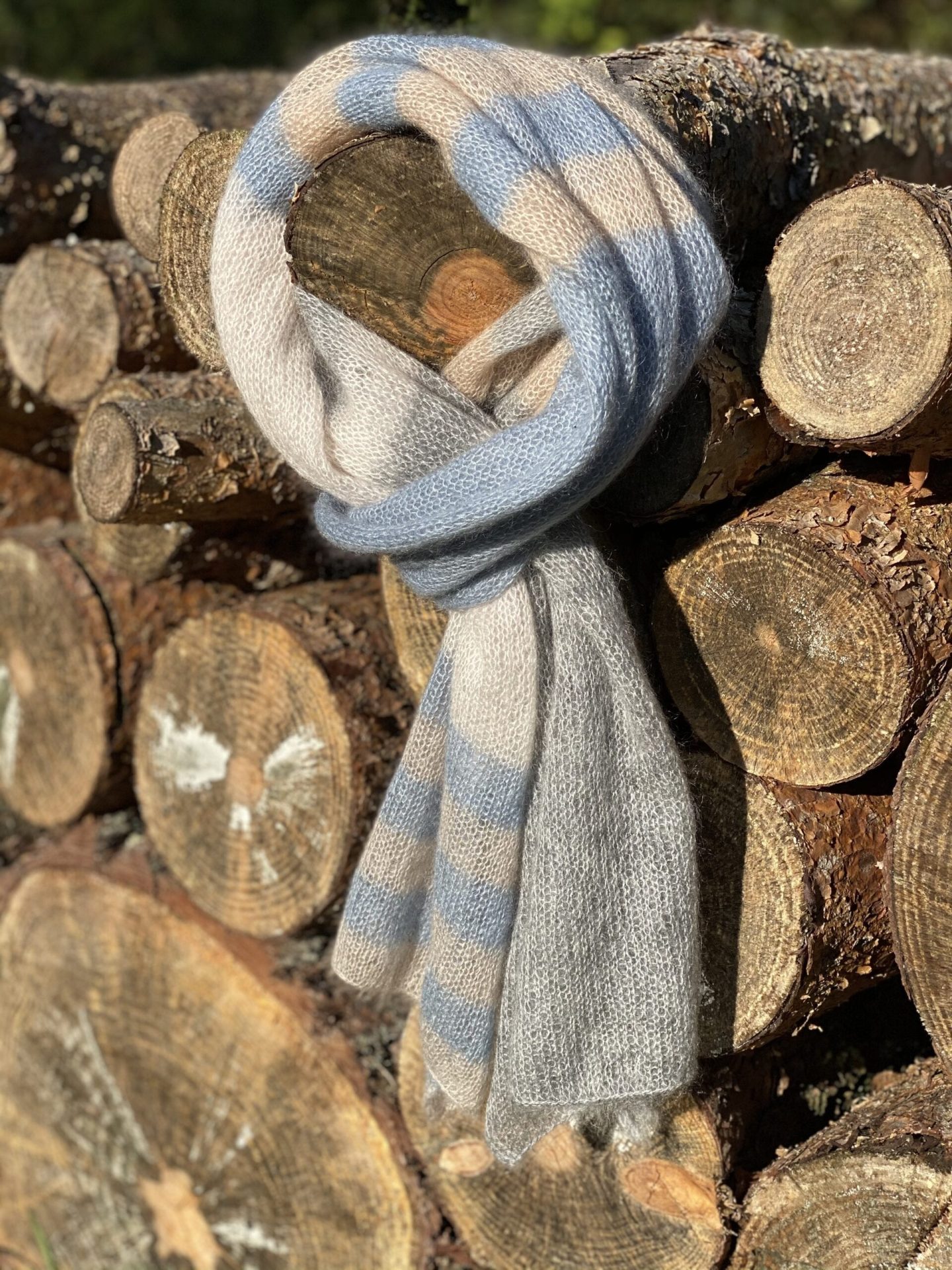 Lækkert og luftigt tørklæde strikket i en tråd Silk Mohair. Tørklædet er strikket i glatstrik.