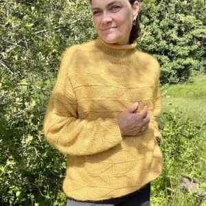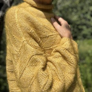 Strikningen starter oppefra og ned, hvilket gør det nemt at tilpasse længden på både krop og ærmer. Trapez Sweater strikkes i et lækkert garn, som giver en blød og let følelse mod huden, og som samtidig holder formen flot. Det anbefales at strikke i Merino 200 Bébé og Brushed Alpaca fra Lang Yarns for en luksuriøs og varm sweater, der stadig føles let og åndbar.