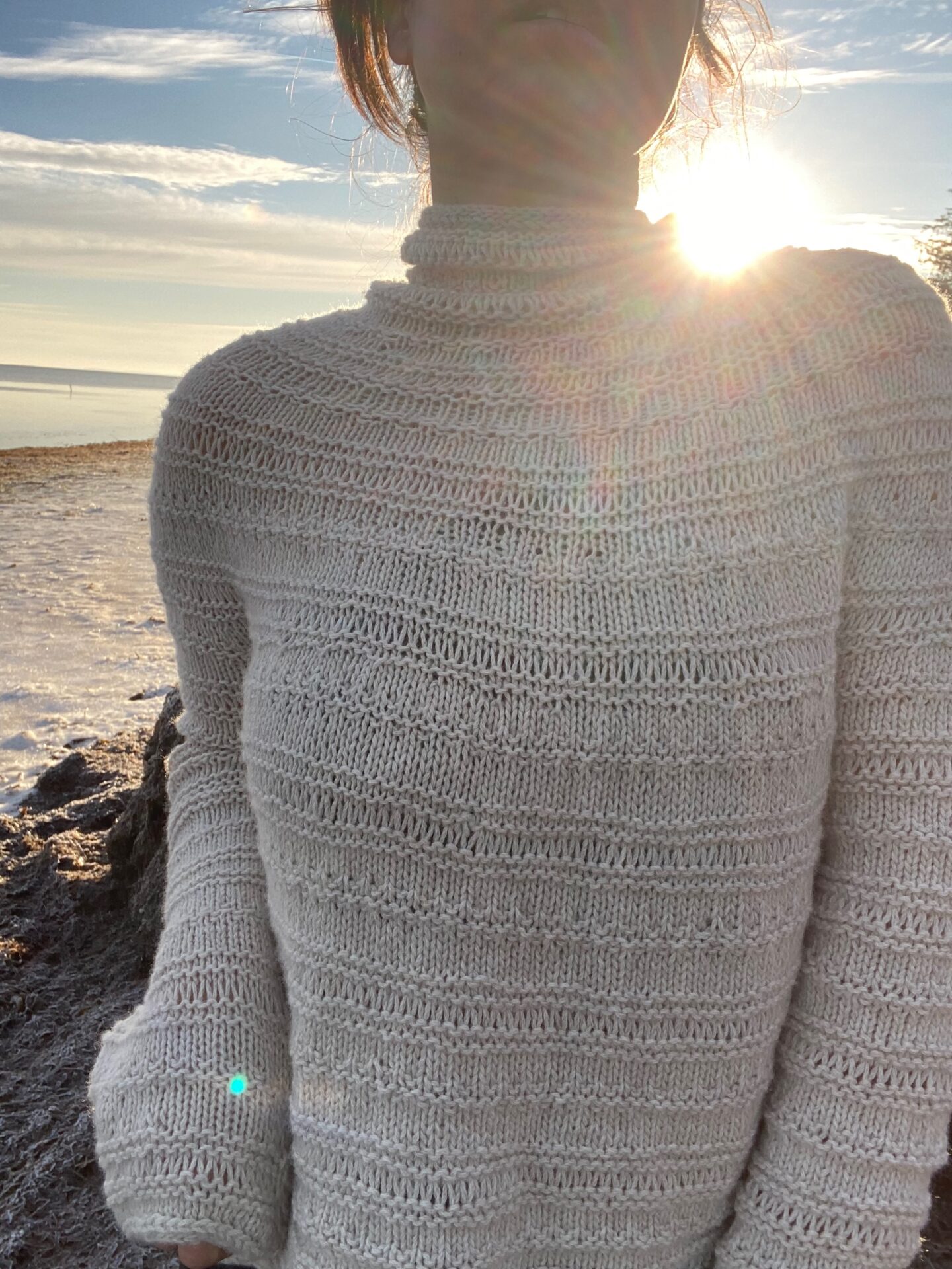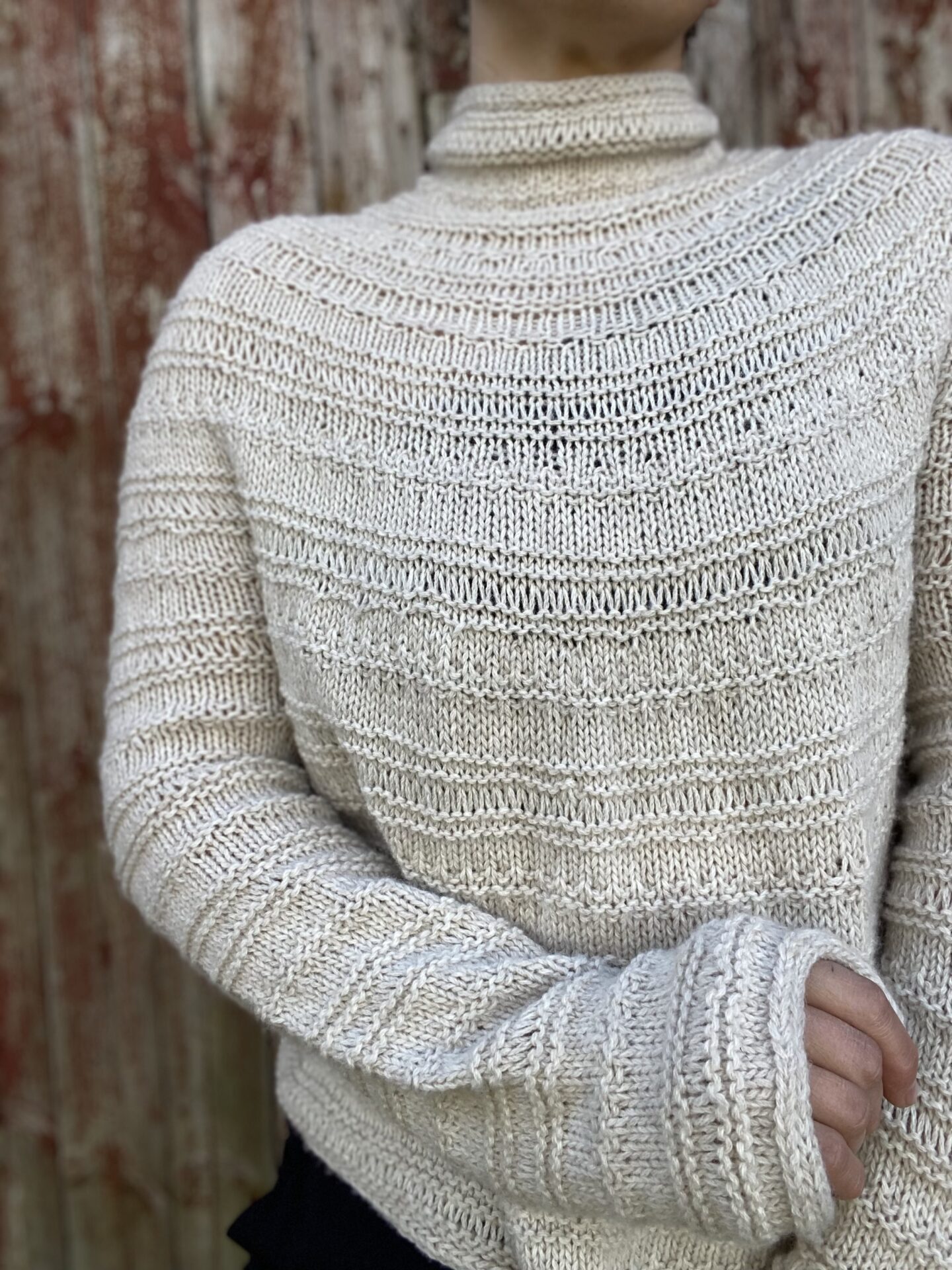 Vestvågøy Sweater er det ideelle projekt til den erfarne strikker, som ønsker et æstetisk og anvendeligt stykke strik med et tydeligt nordisk udtryk.