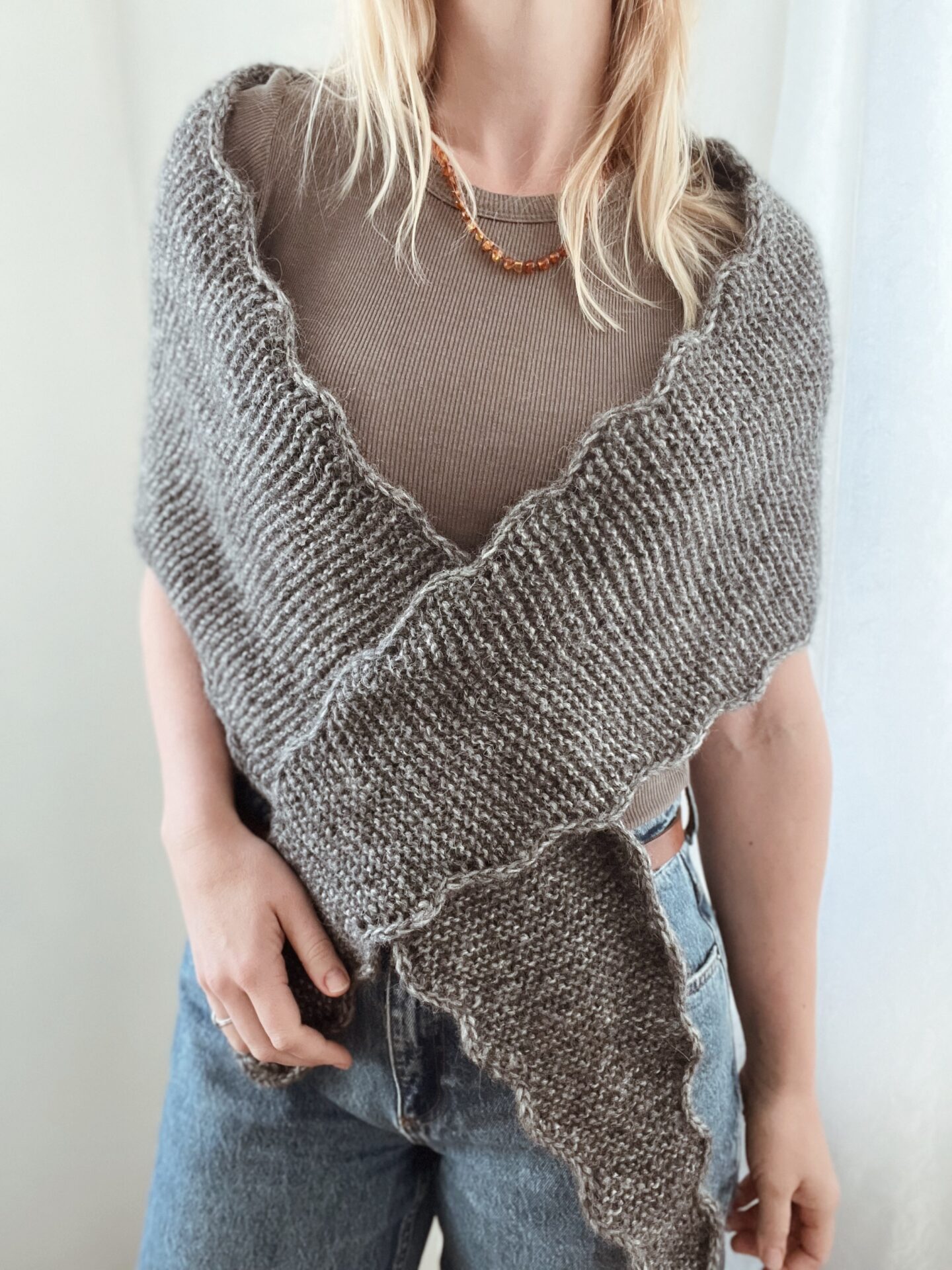 Ønsker du et mindre scarf / tørklæde, har Vigga Shawl en lillesøster. Nemlig Vigga Scarf. Du finder opskriften her.