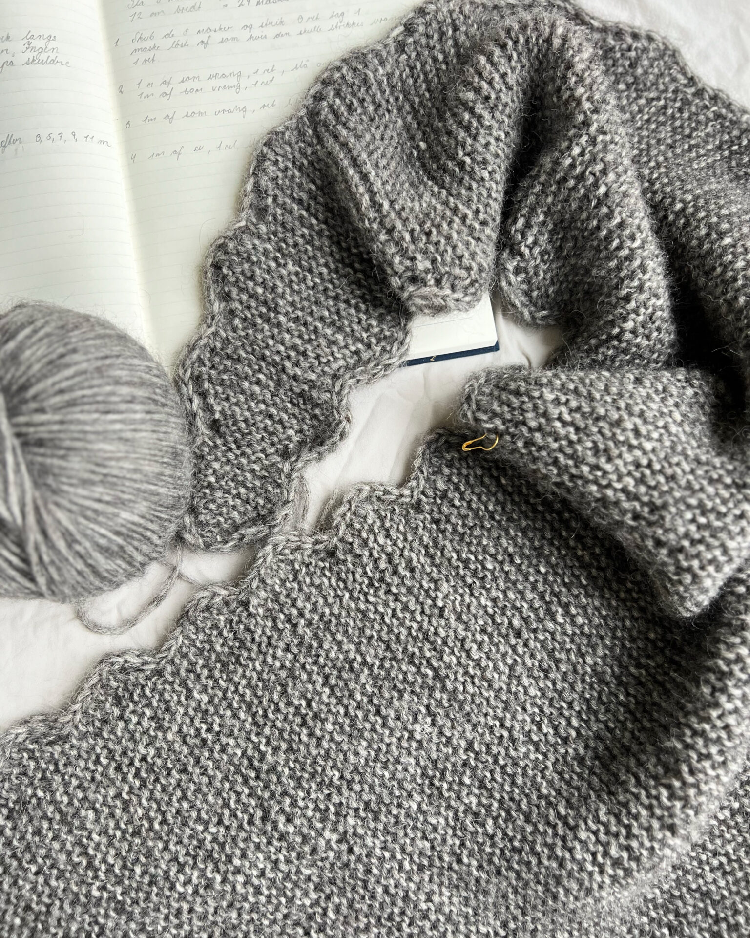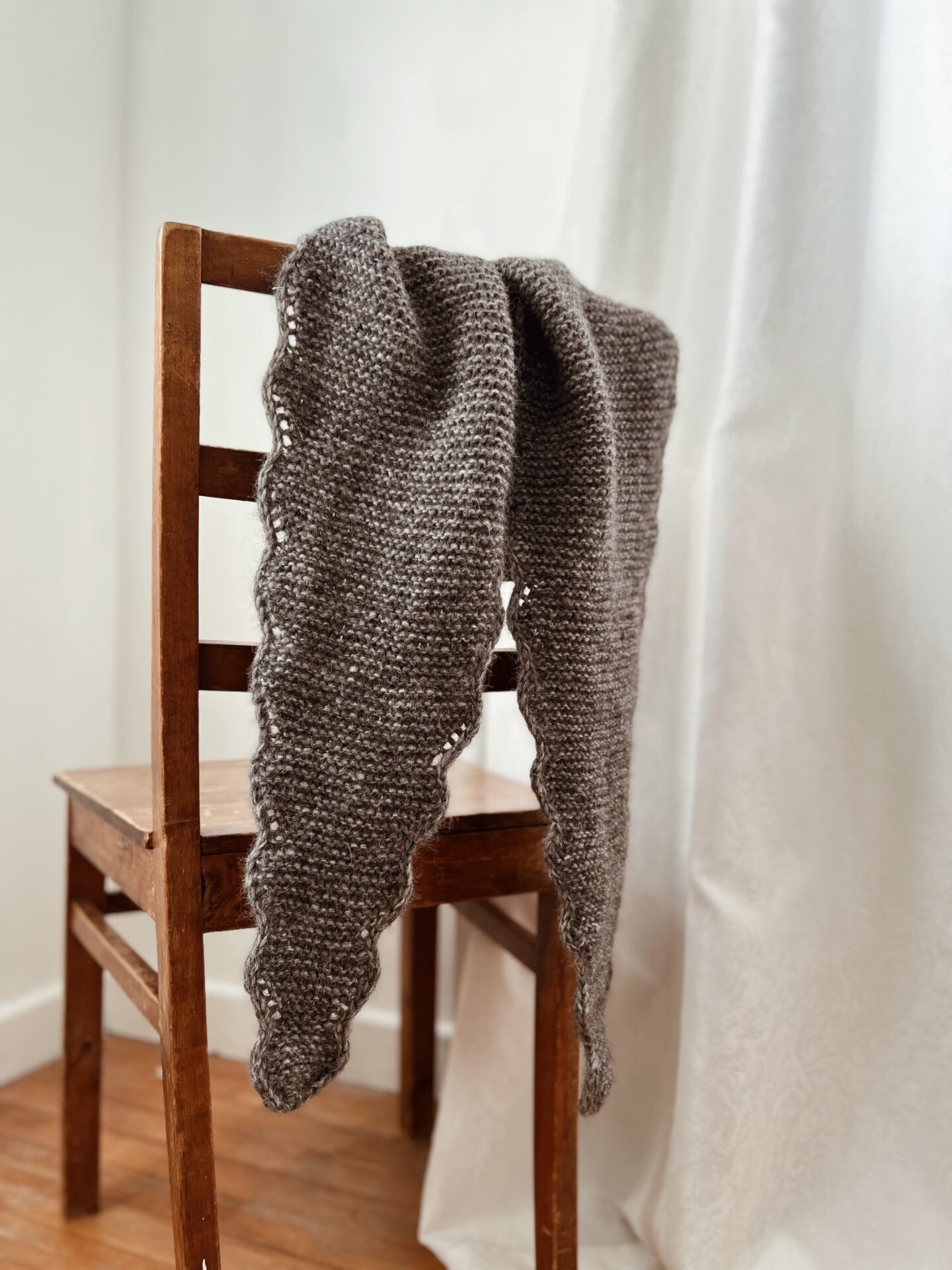 Vigga Shawl fra Notperfectknit, er et smukt håndstrikket sjal/tørklæde, der kombinerer klassisk elegance med et strejf af moderne finesse. Undervejs transformeres tørklædet i det omhyggelige retstrik på pind 5.5 mm til det smukkeste bølgemønster langs kanterne på begge sider, hvilket tilføjer shawlet en subtil, men iøjnefaldende detalje til din påklædning.
