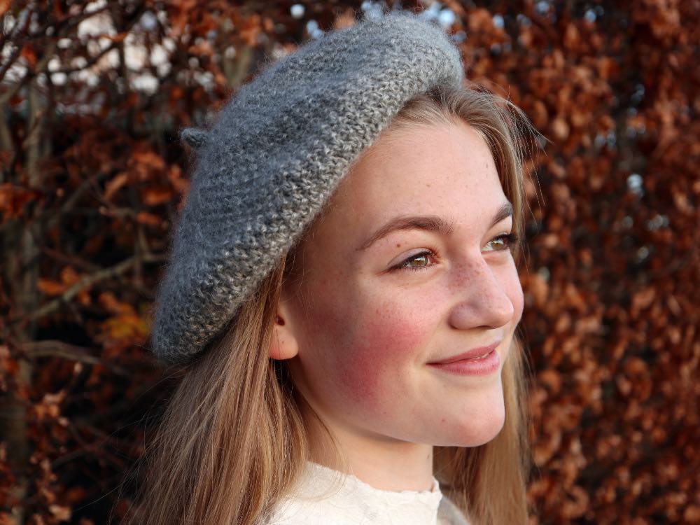 Vintereventyr Baskerhue er en elegant og feminin alpehue, der strikkes i