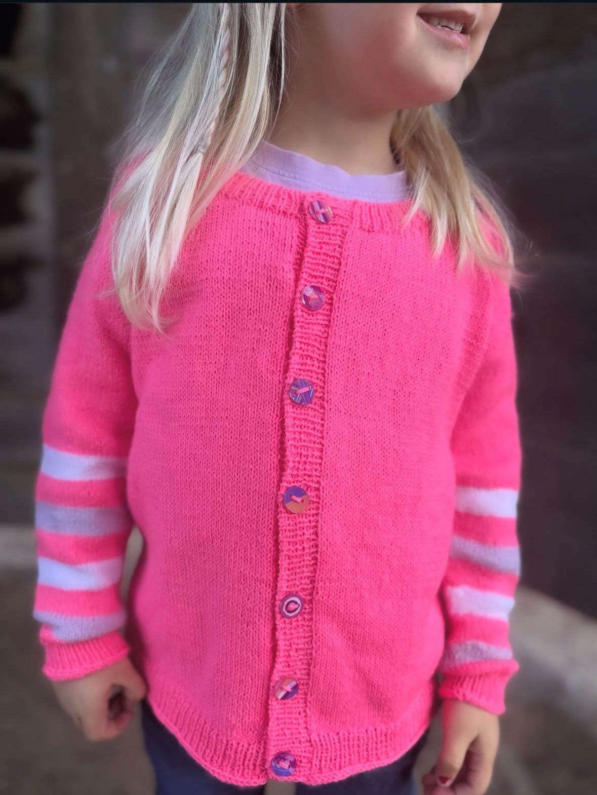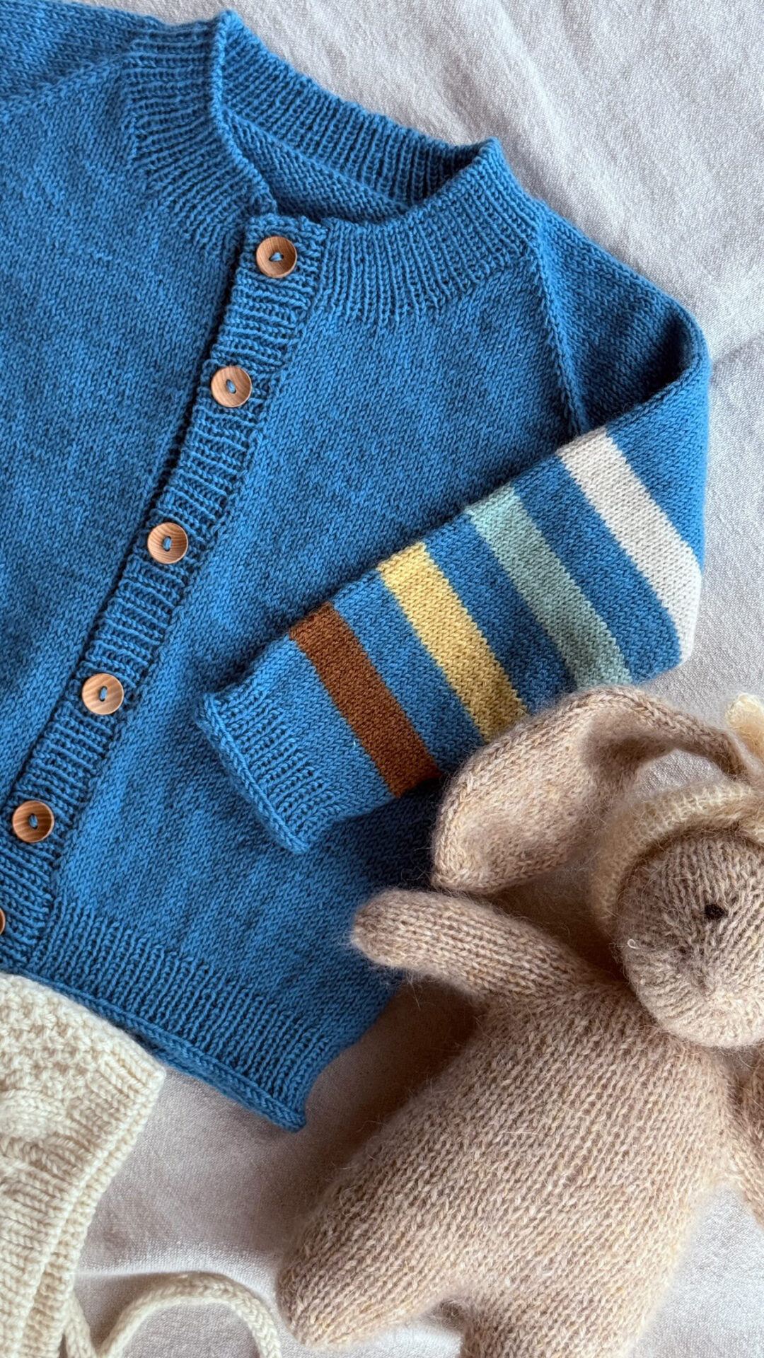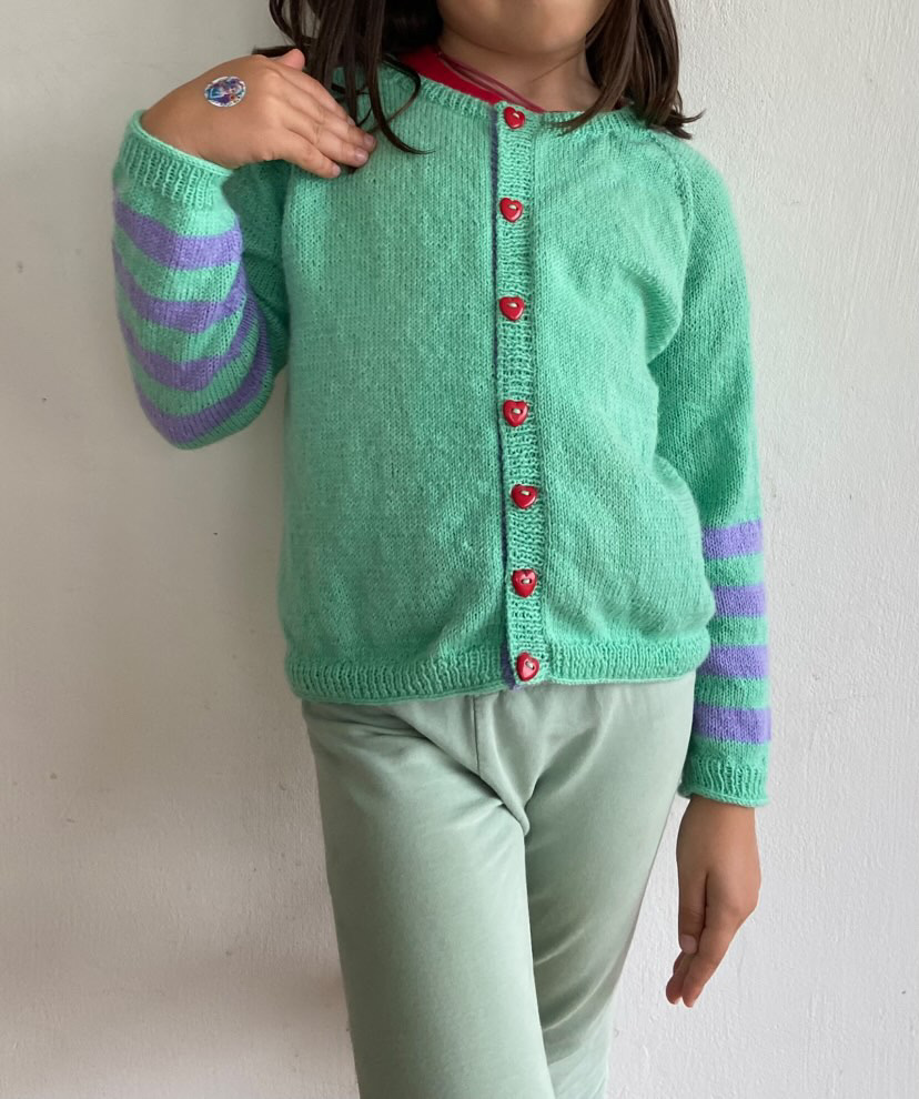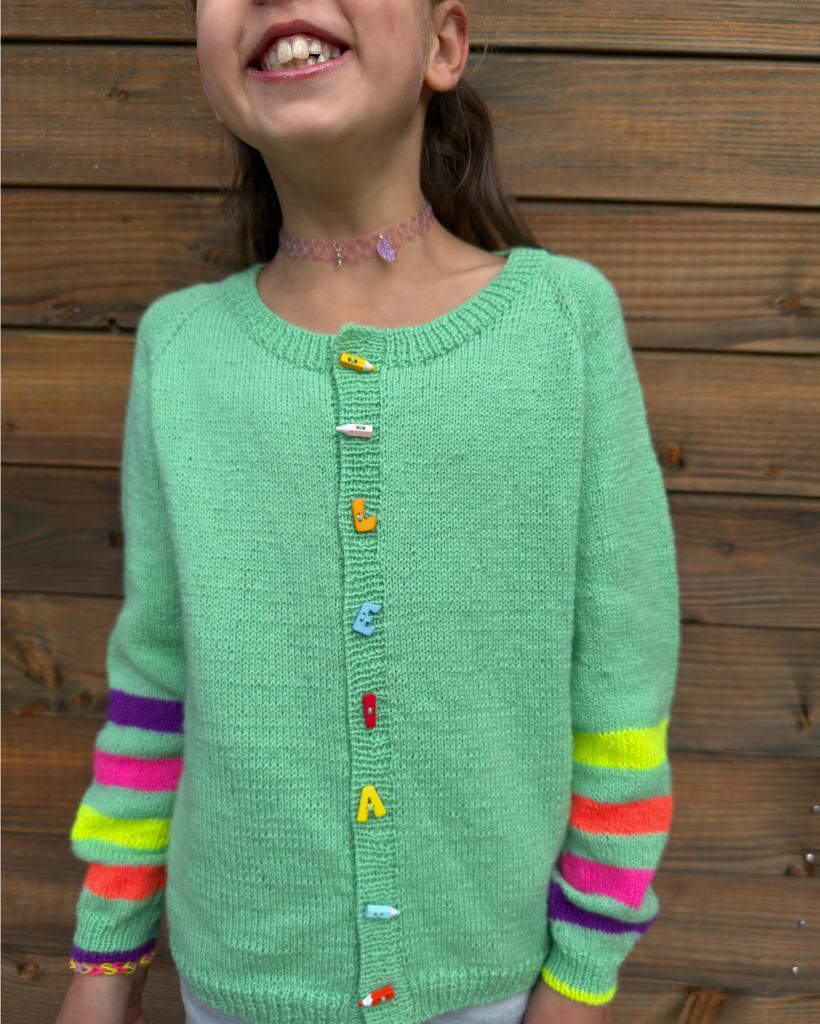 Wasaga Cardigan (junior) af Vibely Strik er en top-down raglan-cardigan i glatstrik med dyb hals, 1×1-ribkanter og smuk i-cord-aflukning. Ærmerne har karakterfulde Wasaga-striber nederst, så du kan vælge én, to eller fire kontrastfarver. Der strikkes på pinde 2,5 mm og 3 mm, og opskriften guider gennem raglanudtagninger samt forkant med knaphuller og italiensk aflukning. Cardiganen strikkes i Lang Yarns Jawoll (50 g = 210 m) eller et garnalternativ med samme fasthed. Størrelser 2 (4) 6 (8) 9 (11) år, overvidde ca. 66,5–90,5 cm, gør den perfekt som lag-på-lag hele året. Bundfarve: 150–300 g afhængigt af størrelse. Til striberne rækker ét nøgle pr. kontrastfarve – og bruger du kun én farve, er ét nøgle stadig nok til alle striber. Strikkefasthed 28 m x 38 p = 10 x 10 cm på pind 3 mm.