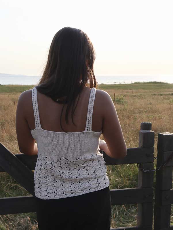 Udvid din sommergarderobe med den smukkeste sommertop fra Knitamore. White Nights Summertop er en fin og feminin sommertop med flotte detaljer på både stropperne og kropsstykket. Perfekt til både hverdag og fest. Køb den som garnpakke.