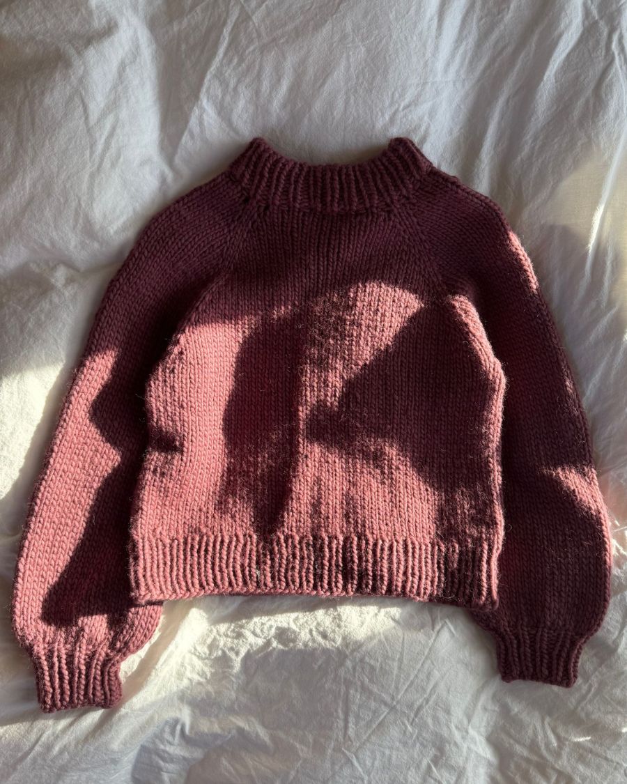 Wilma Sweater er en lun, feminin og moderne sweater med en smuk pasform og klassiske detaljer. Sweateren strikkes oppefra og ned med raglanudtagninger, hvilket gør det nemt at tilpasse længden på både krop og ærmer undervejs. Den har en tæt siddende ribkant i halsen, som ombukkes og strikkes ned for et flot finish. Modellen har et kort og moderne snit, og ærmerne afsluttes med en tætsiddende rib, der fremhæver sweaterens elegante form.
