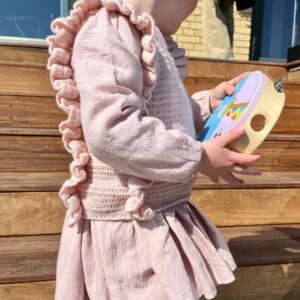 Jeg startede Violi i 2023 og her designer jeg hæklet tøj til børn. Min hæklerejse startede i 2017, da jeg var gravid med min første datter, men jeg har elsket at være kreativ siden jeg var barn, hvor jeg bl.a. designede, strikkede, og syede tøj til bamser og barbie. Hækling er blevet mit kreative frirum i en travl hverdag, og det jeg bedst kan lide er at finde på nye designs, hækleprocessen og at se resultatet på mine egne eller andres børn.